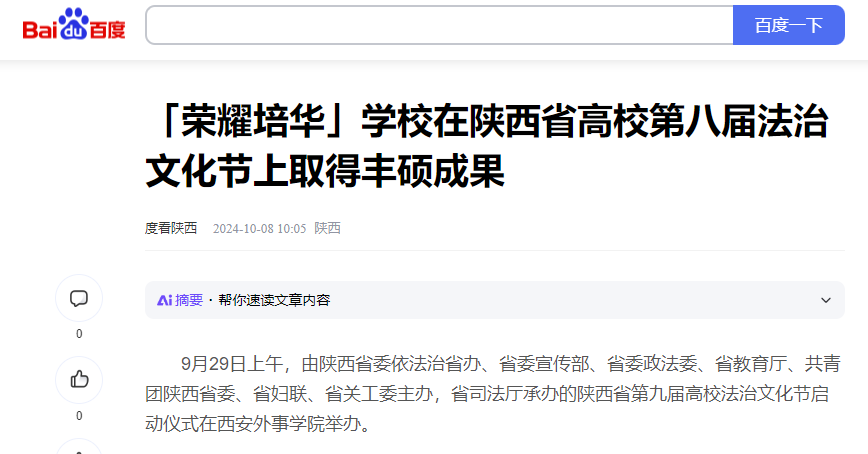 9月29日上午,由陕西省委依法治省办、省委宣传部、省委政法委、省教育厅、共青团陕西省委、省妇联、省关工委主办,省司法厅承办的陕西省第九届高校法治文化节启动仪式在西安外事学院举办。