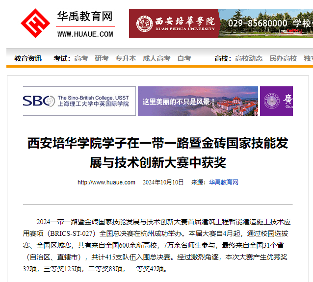 2024一带一路暨金砖国家技能发展与技术创新大赛首届建筑工程智能建造施工技术应用赛项(BRICS-ST-027)全国总决赛在杭州成功举办。本届大赛自4月起,通过校园选拔赛、全国区域赛,共有来自全国600余所高校,7万余名师生参与,最终来自全国31个省(自治区、直辖市),共计415支队伍入围总决赛。经过激烈角逐,本次大赛产生优秀奖32项,三等奖125项,二等奖83项,一等奖42项。