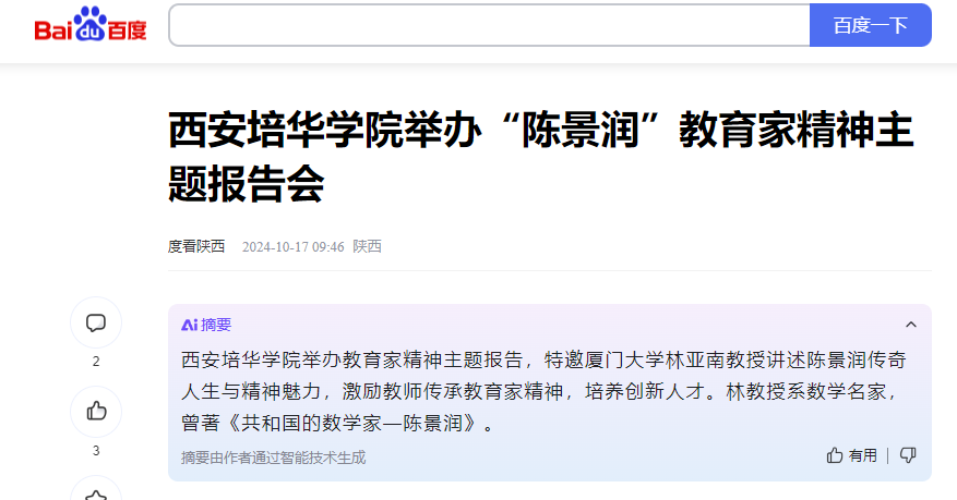 报告会要求全体教师应当铭记陈景润的传奇人生,传承他的教育家精神,致力于培养更多具有创新精神和社会责任感的人才。长期以来,学校开展了形式多样的教育家精神传承活动,用教育家精神激励全体教师坚定职业信念、树立职业理想,为建设教育强国贡献力量。