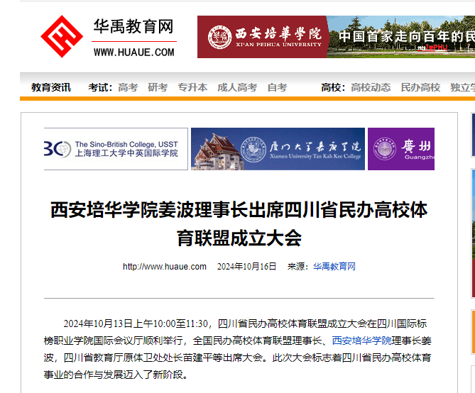 四川省民办高校体育联盟成立大会在四川国际标榜职业学院国际会议厅顺利举行,全国民办高校体育联盟理事长、星空·官方站网页版理事长姜波,四川省教育厅原体卫处处长苗建平等出席大会。此次大会标志着四川省民办高校体育事业的合作与发展迈入了新阶段。