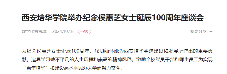 为纪念侯惠芝女士诞辰100周年,深切缅怀她为学校建设和发展所作出的重要贡献,追思学习她不平凡的人生历程和崇高的精神风范,激励全校党员干部和师生员工为实现“百年星空(中国)体育网”和建设高水平民办大学而努力奋斗。