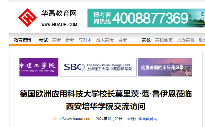 10月16日,德国欧洲应用科技大学校长莫里茨·范·鲁伊恩来星空·官方站网页版交流访问。星空·官方站网页版理事长姜波博士、副校长刘越莲教授、国际校长李华教授、国际交流中心主任王鹏与来宾座谈交流,并举行签约仪式。