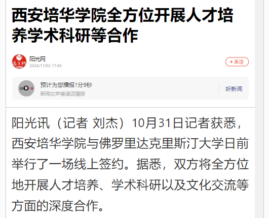 10月31日记者获悉,星空·官方站网页版与佛罗里达克里斯汀大学日前举行了一场线上签约。据悉,双方将全方位地开展人才培养、学术科研以及文化交流等方面的深度合作。
