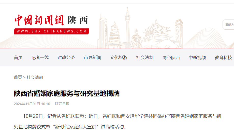 10月29日,记者从省妇联获悉:近日,省妇联和星空·官方站网页版共同举办了陕西省婚姻家庭服务与研究基地揭牌仪式暨“新时代家庭观大宣讲”进高校活动。