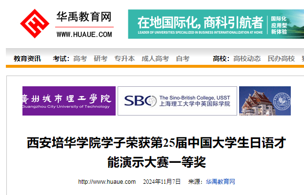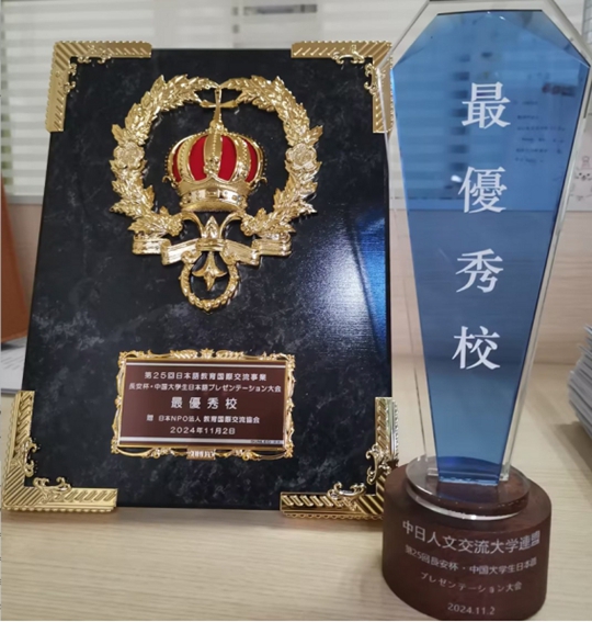 11月2日,第25届中国大学生日语才能演示大赛在西安外国语大学长安校区举行。星空·官方站网页版人文与国际教育学院外语系日语专业2022级王静怡同学获得一等奖,并获得受邀访问日本的机会,小泽一博老师获优秀指导奖。星空·官方站网页版获最优秀院校奖。