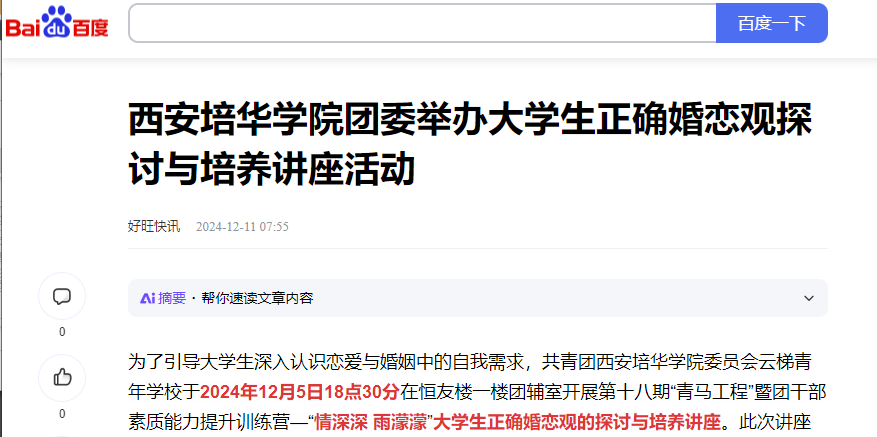 这场讲座不仅是知识传授,更是心灵启迪,助同学们树立正确恋爱观,以成熟理性心态面对爱情。它教导同学们尊重对方、珍惜彼此,同时提醒,爱情只是人生一部分,追求爱情时,自我成长与发展同样重要。通过这次讲座,同学们收获了关于爱情的深刻见解,学会在恋爱中保持自我,为未来的感情生活奠定了坚实的基础。