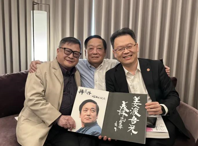 姜波理事长与世界华人协会常务副主席、世界华商投资基金会创会会长马兴利博士、韩美林先生在一起