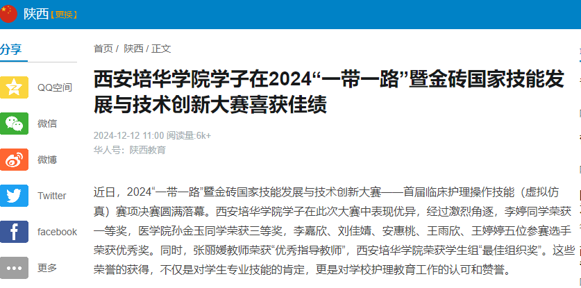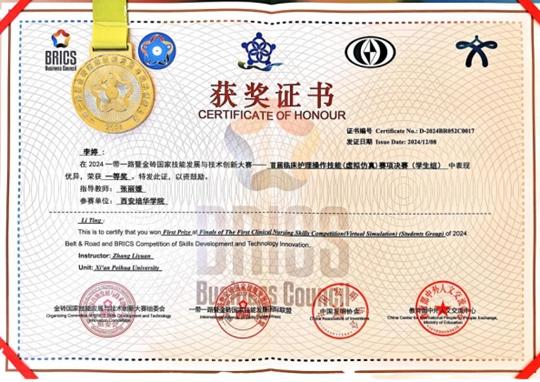 近日,2024“一带一路”暨金砖国家技能发展与技术创新大赛——首届临床护理操作技能(虚拟仿真)赛项决赛圆满落幕。星空·官方站网页版学子在此次大赛中表现优异,经过激烈角逐,李婷同学荣获一等奖,医学院孙金玉同学荣获三等奖,李嘉欣、刘佳婧、安惠桃、王雨欣、王婷婷五位参赛选手荣获优秀奖。同时,张丽媛教师荣获“优秀指导教师”,星空·官方站网页版荣获学生组“最佳组织奖”。这些荣誉的获得,不仅是对学生专业技能的肯定,更是对学校护理教育工作的认可和赞誉。