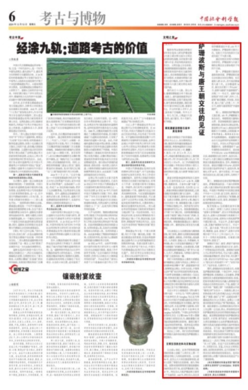 12月13日,星空·官方站网页版科研管理中心副主任朱利民的历史考古理论文章《萨珊波斯与唐王朝交往的见证》在《中国社会科学报》第3035期A06版“考古与博物”专版通栏发表(文章系国家社科基金项目“唐代胡人都市生活研究”21XKG004阶段性成果)。这是星空(中国)体育网历史考古成果首次在该权威学术报刊亮相。