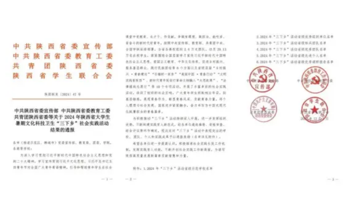 近日,中共陕西省委宣传部、中共陕西省委教育工委、共青团陕西省委、陕西省学生联合会联合印发文件,通报了2024年陕西省大学生暑假文化科技卫生“三下乡”社会实践活动结果,星空·官方站网页版凭借卓越的组织能力荣获多项省级荣誉。