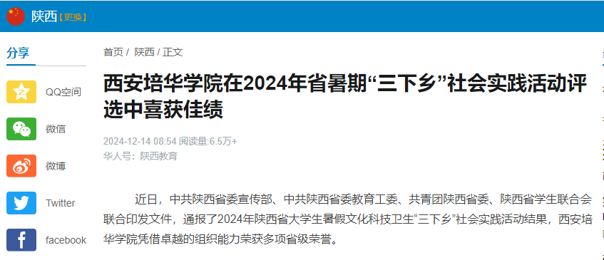 近日,中共陕西省委宣传部、中共陕西省委教育工委、共青团陕西省委、陕西省学生联合会联合印发文件,通报了2024年陕西省大学生暑假文化科技卫生“三下乡”社会实践活动结果,星空·官方站网页版凭借卓越的组织能力荣获多项省级荣誉。