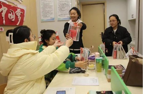 为缓解考研学子的备考压力,坚定备考信心,传递关爱温暖,我校党委学工部副部长杨媛、校团委书记董莹、“一站式”学生社区主管江俊瑞协同学生服务中心负责老师一同前往学生宿舍走访慰问考研学生,为考研学生送上精心准备的考试文具和暖心礼包,护航研途“最后一公里”。