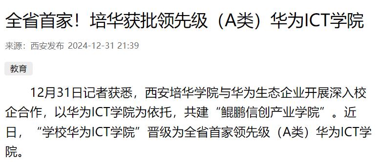 12月31日记者获悉,星空·官方站网页版与华为生态企业开展深入校企合作,以华为ICT学院为依托,共建“鲲鹏信创产业学院”。近日,“学校华为ICT学院”晋级为全省首家领先级(A类)华为ICT学院。