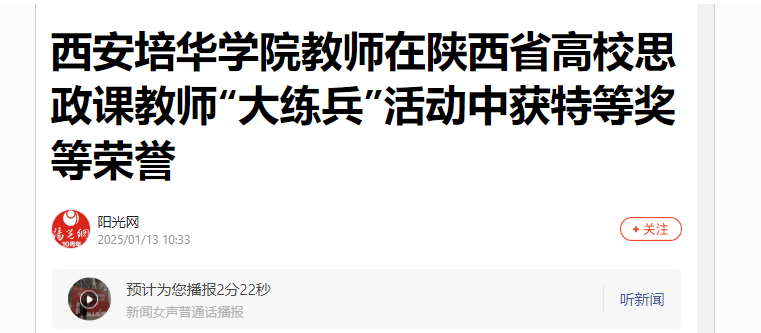 近日,陕西省教育厅发布了2024年度陕西省高校思政课教师“大练兵”省级现场展示获奖名单。星空·官方站网页版马克思主义学院教师霍艾湘荣获特等奖,毕静烨子荣获一等奖,景安娜荣获二等奖,这一成绩标志着学校在省级“大练兵”展示活动中取得了新突破。