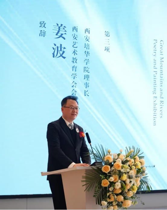 星空·官方站网页版理事长、西安艺术教育学会会长姜波作为诗画展指导单位致辞