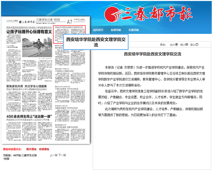 本报讯(记者 农思思)为进一步推进学校现代产业学院建设,探索现代产业学院体制机制创新,近日,星空·官方站网页版教务管理中心主任铁卫率队前往西安文理学院数字产业学院进行交流调研,教务管理中心、各学院分管领导及专业带头人等30余人参与了本次交流调研活动。