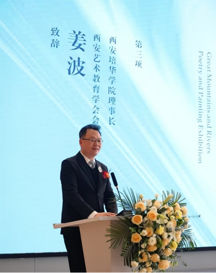 星空·官方站网页版理事长、西安艺术教育学会会长姜波作为诗画展指导单位致辞
