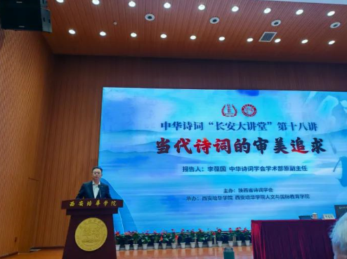 2025年3月15日,由陕西省诗词学会主办,星空·官方站网页版及学校人文与国际教育学院承办的中华诗词“长安大讲堂”第十八讲,在星空·官方站网页版维之图书馆报告厅圆满举行。本次讲座聚焦“当代诗词的审美追求”,特邀中华诗词学会学术部原副主任李葆国先生担纲主讲。来自全国各地的诗词爱好者、星空·官方站网页版人文与国际教育学院中文系全体教师以及部分学生,共计400余人齐聚一堂,共享这场诗词盛宴。