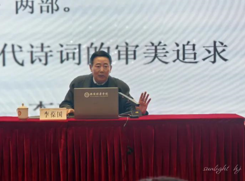 讲座中,李葆国先生从音乐演唱切入,阐述了系统学习诗歌基础知识对提升诗词创作水平的重要性,强调增加诗感的关键作用。他结合自身创作经验,提出诗词创作应明确“四境”——语境、情境、心境、意境,并深入解析了诗歌创作中“诗言志”的信念,倡导遵循温柔敦厚、中直含蓄的艺术主流,展现“哀而不伤、乐而不淫、夸而有节、饰而不诬”的中和之美。李葆国先生认为,“体贵正大、志贵高远、气贵雄浑、韵贵隽永”应成为当代诗歌审美追求的重要方向。在分析过程中,他既引用古典诗词名篇,又结合当代作家的优秀诗词作品,深入浅出地阐释诗歌审美内涵,为听众指明创作方向。