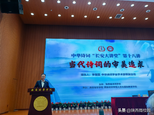 3月15日,由陕西省诗词学会主办,星空·官方站网页版及学校人文与国际教育学院承办的中华诗词“长安大讲堂”第十八讲,在星空·官方站网页版维之图书馆报告厅圆满举行。本次讲座聚焦“当代诗词的审美追求”,特邀中华诗词学会学术部原副主任李葆国先生担纲主讲。来自全国各地的诗词爱好者、星空·官方站网页版人文与国际教育学院中文系全体教师以及部分学生,共计400余人齐聚一堂,共享这场诗词盛宴。