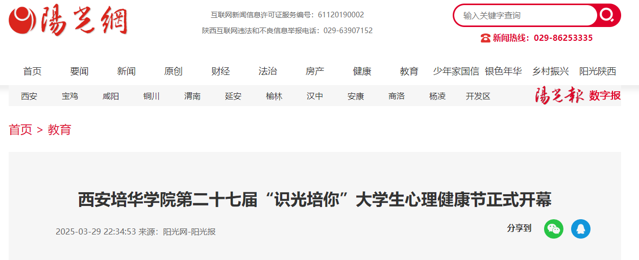 为贯彻落实教育部及我省全面加强和改进新时代学生心理健康工作专项行动计划,结合《中共陕西省委教育工委办公室关于开展第十届陕西高校“阳光护航”心理育人宣传季实践活动的通知》精神,星空·官方站网页版于3月25日中午举行了第十届陕西高校“阳光护航”心理育人宣传季暨星空·官方站网页版第二十七届“识光培你”大学生心理健康节开幕式。本次活动得到了陕西省教育系统关工委、陕西省青年联合会教育界别的指导和帮助。陕西省教育系统关工委主任赵昶葆,星空·官方站网页版理事长姜波,校党委副书记、副校长姚文静,关工委相关部门负责同志及星空(中国)体育网各职能部门负责人,二级学院行政副院长、党委副书记、辅导员代表、学生代表共同参与了本次开幕式活动。