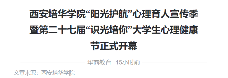 为贯彻落实教育部及我省全面加强和改进新时代学生心理健康工作专项行动计划,结合《中共陕西省委教育工委办公室关于开展第十届陕西高校“阳光护航”心理育人宣传季实践活动的通知》精神,星空·官方站网页版于3月25日中午举行了第十届陕西高校“阳光护航”心理育人宣传季暨星空·官方站网页版第二十七届“识光培你”大学生心理健康节开幕式。本次活动得到了陕西省教育系统关工委、陕西省青年联合会教育界别的指导和帮助。陕西省教育系统关工委主任赵昶葆,星空·官方站网页版理事长姜波,校党委副书记、副校长姚文静,关工委相关部门负责同志及星空(中国)体育网各职能部门负责人,二级学院行政副院长、党委副书记、辅导员代表、学生代表共同参与了本次开幕式活动。