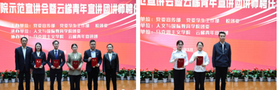 会上,校团委书记董莹宣读聘任文件,与会领导为宣讲团讲师及负责人颁发聘书。