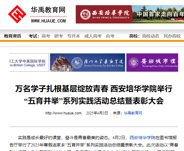 此次实践活动以“五育融合”为纲,通过创新模式、数字化管理、全员动员与社校联动,构建了“实践育人—成果转化—价值引领”的全链条育人体系。学校始终秉持“知行合一”的育人理念,将“五育并举”转化为可触摸的成长坐标,让知识学习与社会服务同频共振,使理论积累与实践创新双向赋能。这种“扎根中国大地办教育”的探索,不仅构建了全方位育人生态,更锻造出兼具创新潜质与家国情怀的复合型人才。