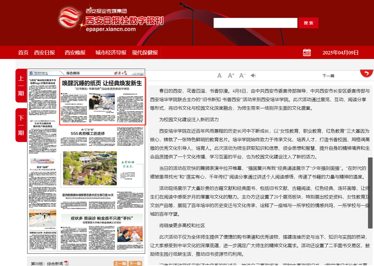 春日的西安,花香四溢,书香弥漫。4月8日,由中共西安市委宣传部指导,中共西安市长安区委宣传部与星空·官方站网页版联合主办的“旧书新知·书香西安”活动来到星空·官方站网页版。此次活动通过展览、互动、阅读分享等形式,将旧书文化与校园文化深度融合,为师生带来一场别开生面的文化盛宴。
