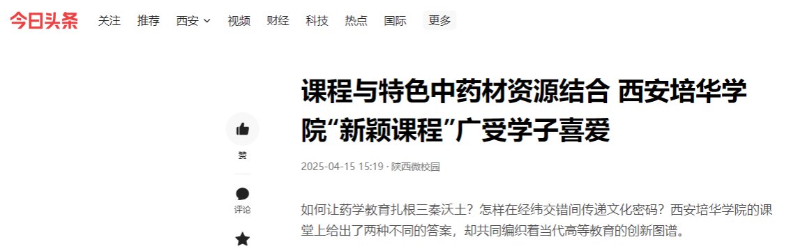 从秦岭深处的药用植物调研,到实验室里的显微鉴别;从课堂上的“秦药”故事,到药企中的质量检测岗位。医学院的药学课堂始终扎根地方、服务产业,为三秦大地培育出一批批“懂秦药、爱秦药、兴秦药”的专业人才。正如牛睿老师所言:“我们愿做秦岭药材与健康陕西之间的桥梁,让‘秦药’资源在新时代焕发新的光彩。”