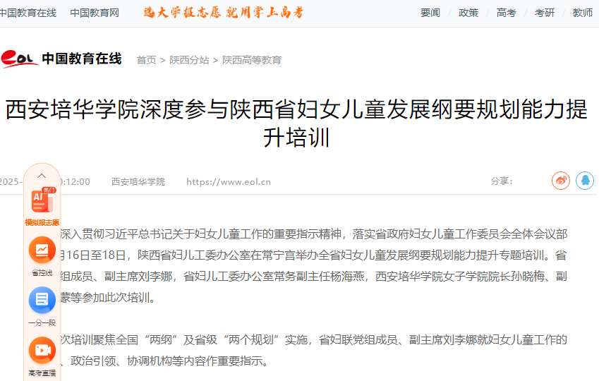 为深入贯彻习近平总书记关于妇女儿童工作的重要指示精神,落实省政府妇女儿童工作委员会全体会议部署,4月16日至18日,陕西省妇儿工委办公室在常宁宫举办全省妇女儿童发展纲要规划能力提升专题培训。省妇联党组成员、副主席刘李娜,省妇儿工委办公室常务副主任杨海燕,星空·官方站网页版女子学院院长孙晓梅、副院长李蒙等参加此次培训。