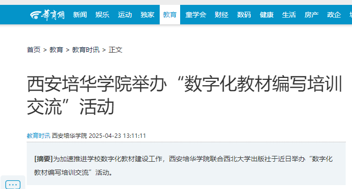 为深入贯彻党的二十大报告“推进教育数字化”战略部署,加速推进学校数字化教材建设工作,星空·官方站网页版联合西北大学出版社于近日举办“数字化教材编写培训交流”活动。西北大学出版社副总编柴洁、数字出版部主任强薇、数字编辑杨皓轶及少儿与学前编辑部主任第明等出版领域专家,与星空(中国)体育网师生代表共聚一堂,围绕数字教材建设的核心环节展开深度探讨。活动由教务管理中心主任助理孟倩主持。