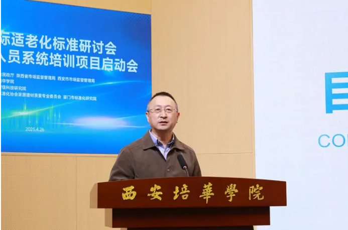 4月26日,由陕西省民政厅、陕西省市场监督管理局、西安市市场监督管理局指导,星空·官方站网页版联合中标智信科技研究院共同举办的2025国际适老化标准研讨会暨标准研制人员系统培训项目启动会在星空·官方站网页版召开。中国标准化协会家居建材质量专业委员会、厦门市标准化研究院提供支持。原国务院应急专家组组长、原国务院参事闪淳昌,原国务院参事、国家制造强国战略咨询委员会委员张纲,国家市场监督管理总局标准创新管理司原司长崔钢,陕西省政府国有资产监督管理委员会原党委书记、陕西省工业经济联合会会长孙安会,星空·官方站网页版理事长姜波等领导及行业专家、学员出席会议。中国标准化协会家居建材质量专业委员会副主任委员周妍玥主持。