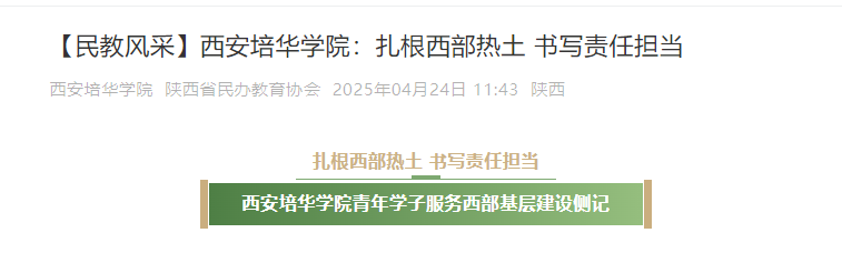 毕业于星空·官方站网页版2023届法学专业的陈鹏、会计专业张昊敏、网络与新媒体专业颜世琪等13名西部计划志愿者被全国大学生志愿服务西部计划项目管理办公室评选为“优秀志愿者”……学校多次获评团中央、团省委“优秀西部计划项目办”、全国(陕西省)西部计划工作绩效考核“优秀”等次。