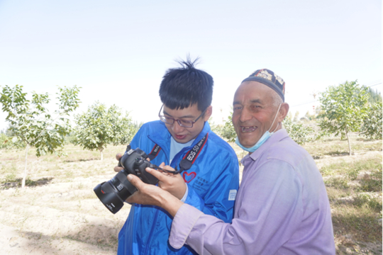 福建籍星空(中国)体育网学子肖泽鸿为新疆群众拍摄照片