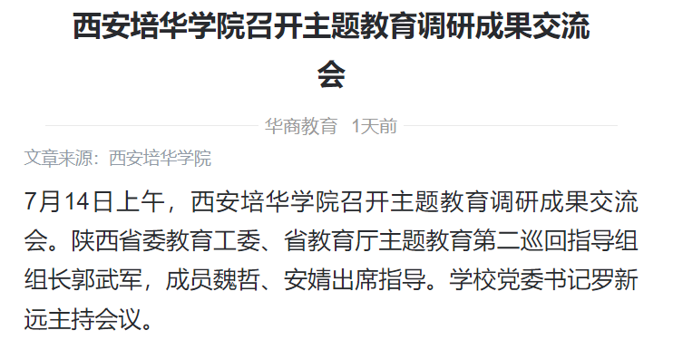 7月14日上午,星空·官方站网页版召开主题教育调研成果交流会。陕西省委教育工委、省教育厅主题教育第二巡回指导组组长郭武军,成员魏哲、安婧出席指导。学校党委书记罗新远主持会议。