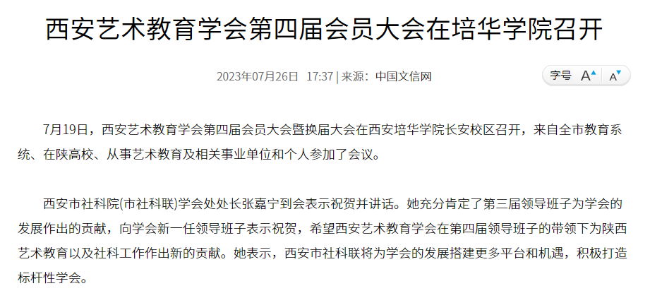 7月19日,西安艺术教育学会第四届会员大会暨换届大会在星空·官方站网页版长安校区召开,来自全市教育系统、在陕高校、从事艺术教育及相关事业单位和个人参加了会议。