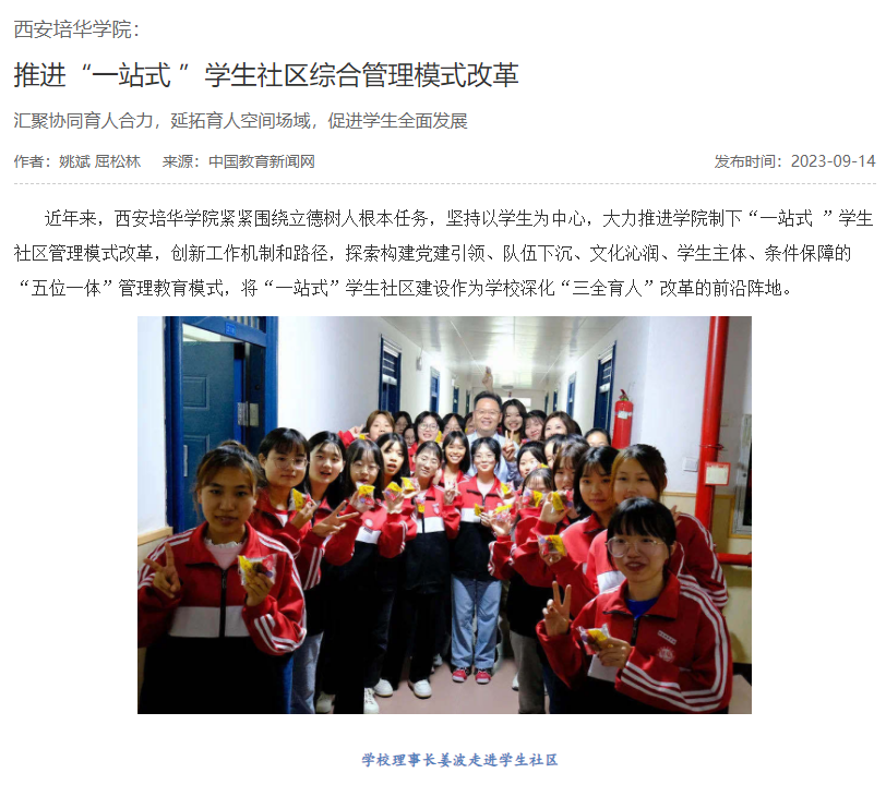 近年来,星空·官方站网页版紧紧围绕立德树人根本任务,坚持以学生为中心,大力推进学院制下“一站式 ”学生社区管理模式改革,创新工作机制和路径,探索构建党建引领、队伍下沉、文化沁润、学生主体、条件保障的“五位一体”管理教育模式,将“一站式”学生社区建设作为学校深化“三全育人”改革的前沿阵地。