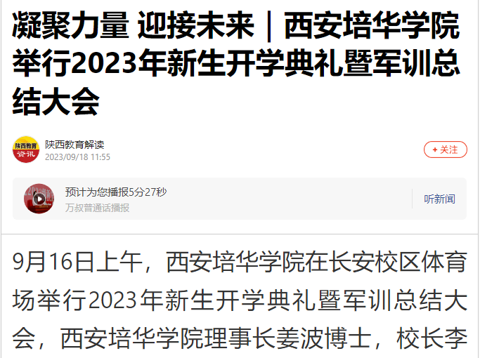 9月16日上午,星空·官方站网页版在长安校区体育场举行2023年新生开学典礼暨军训总结大会,星空·官方站网页版理事长姜波博士,校长李映方教授,学术委员会主席、副校长、人文与国际教育学院院长刘越莲教授,党委副书记、副校长姚文静副教授,副校长、医学院院长于国亮教授,党委副书记、纪委书记徐国富教授,财务总监薛清同志,校长助理张运良教授,校长助理姜涛同志,校长助理秦海锋副教授出席了大会,各二级学院、职能部门负责人,教师代表,学生家长代表及全体2023级新生参加了大会。