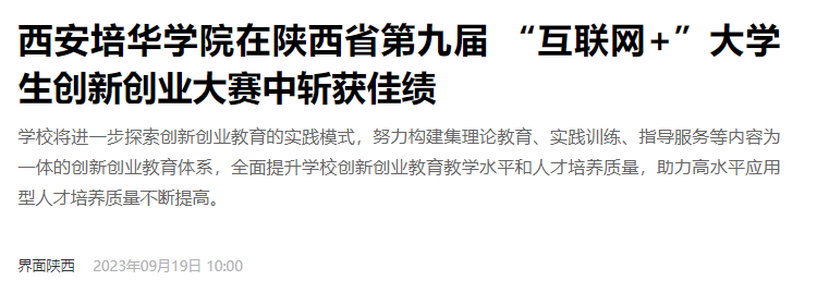 为全面深化创新创业教育改革,陕西省教育厅于2023年6月至8月举办了第九届中国国际“互联网+”大学生创新创业大赛陕西赛区省级复赛,目前大赛陕西赛区获奖名单已出炉。
