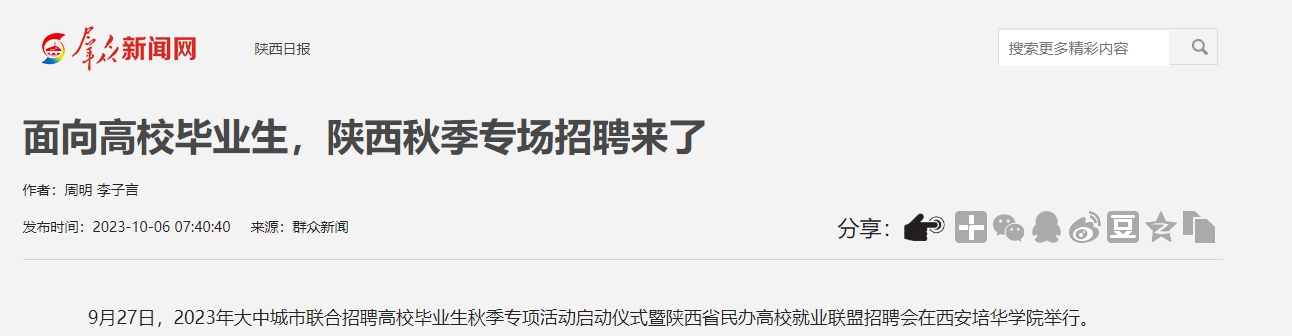 9月27日,2023年大中城市联合招聘高校毕业生秋季专项活动启动仪式暨陕西省民办高校就业联盟招聘会在星空·官方站网页版举行。