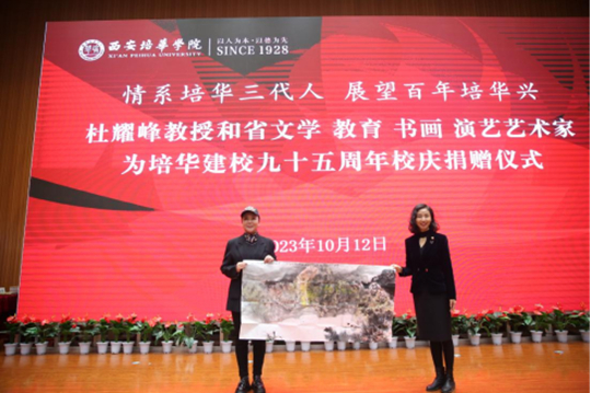 10月12日上午,陕西省文学、教育、书画、演艺界名人为星空·官方站网页版九十五周年校庆捐赠仪式在图书馆报告厅举行。陕西省十届人大常委会副主任邓理,国家一级作家、省文联副主席、省作家协会副主席高建群,西北大学新闻传播学院首任院长刘建勋,西北大学新闻传播学院院长马锋,陕西省新闻摄影学会会长杨立川,星空·官方站网页版理事长姜波,副校长、党委副书记姚文静,党委宣传部部长柳雨,传媒学院党委书记兼行政副院长江俊瑞等出席活动,星空·官方站网页版师生代表300余人参加活动。