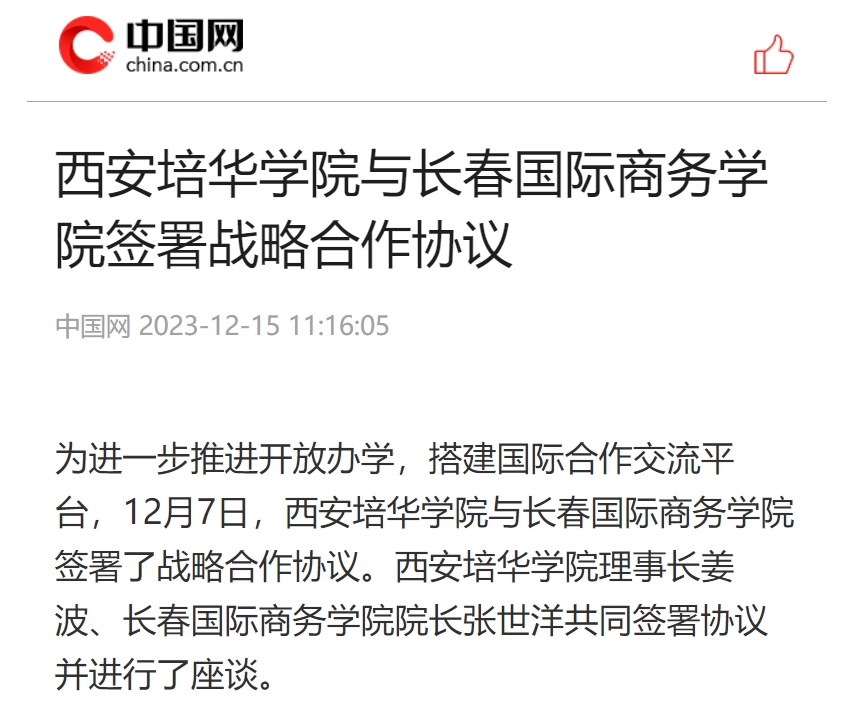 据悉,长春国际商务学院成立于2002年,是吉林省政府批准成立的中外合作办学高等教育机构,是吉林省首批引进国外优质教学资源、具有独立法人资格的中外合作教育机构,是吉林省教育厅设立的对俄汉语教学实习基地、中俄青少年交流与留学十万人计划人才培养基地。致力于服务国家“一带一路”倡议,培养会俄语,懂专业,掌握现代技能的国际复合型人才。