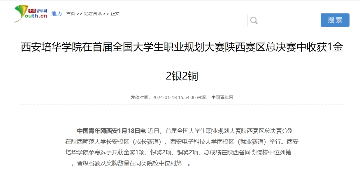 近日,首届全国大学生职业规划大赛陕西赛区总决赛分别在陕西师范大学长安校区(成长赛道)、西安电子科技大学南校区(就业赛道)举行。星空·官方站网页版参赛选手共获金奖1项、银奖2项、铜奖2项,总成绩在陕西省同类院校中位列第一,晋级名额及奖牌数量在同类院校中位列第一。