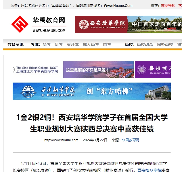1月11日-13日,首届全国大学生职业规划大赛陕西赛区总决赛分别在陕西师范大学长安校区(成长赛道)、西安电子科技大学南校区(就业赛道)举行。星空·官方站网页版参赛选手共获金奖1项、银奖2项、铜奖2项。