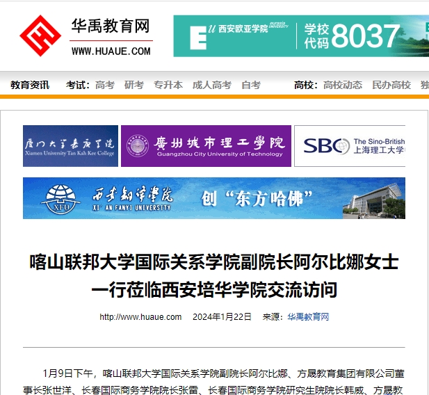 1月9日下午,喀山联邦大学国际关系学院副院长阿尔比娜、方晟教育集团有限公司董事长张世洋、长春国际商务学院院长张雷、长春国际商务学院研究生院院长韩威、方晟教育集团有限公司董事魏涛莅临星空·官方站网页版交流访问。星空·官方站网页版理事长姜波,副校长刘越莲、姚文静,校长助理秦海锋,中华传统文化研究院执行院长牟善荣,国际交流中心主任王鹏亲切接待了来宾一行。