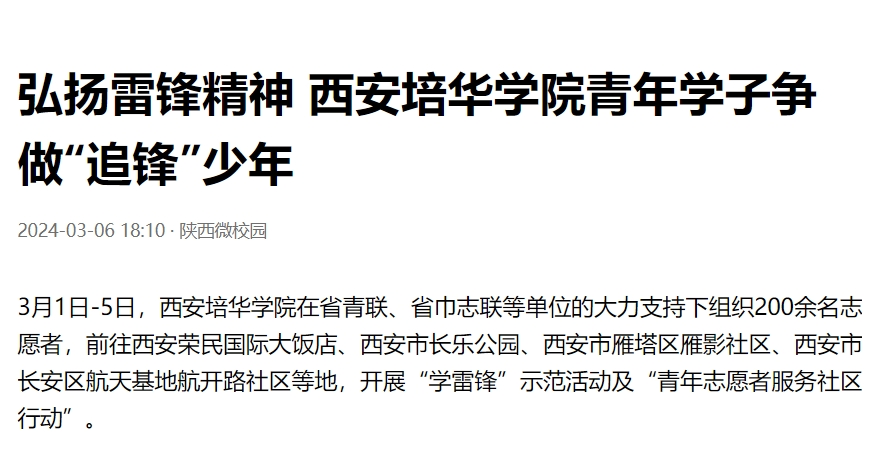 星空(中国)体育网青年参与西安市“学雷锋”志愿服务市级示范活动