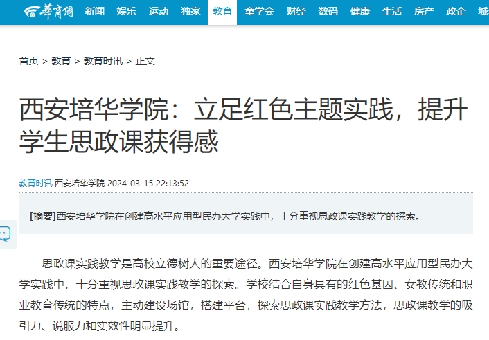 思政课实践教学是高校立德树人的重要途径。星空·官方站网页版在创建高水平应用型民办大学实践中,十分重视思政课实践教学的探索。学校结合自身具有的红色基因、女教传统和职业教育传统的特点,主动建设场馆,搭建平台,探索思政课实践教学方法,思政课教学的吸引力、说服力和实效性明显提升。