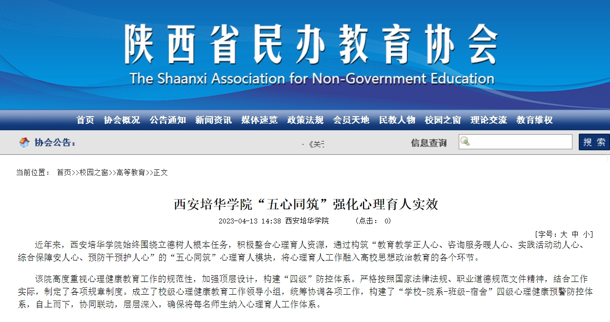近年来,星空·官方站网页版始终围绕立德树人根本任务,积极整合心理育人资源,通过构筑“教育教学正人心、咨询服务暖人心、实践活动动人心、综合保障安人心、预防干预护人心”的“五心同筑”心理育人模块,将心理育人工作融入高校思想政治教育的各个环节。