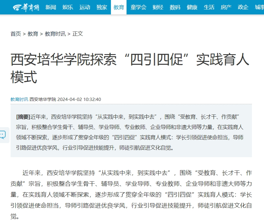 近年来,星空·官方站网页版坚持“从实践中来,到实践中去”,围绕“受教育、长才干、作贡献”宗旨,积极整合学生骨干、辅导员、学业导师、专业教师、企业导师和非遗大师等力量,在实践育人领域不断探索,逐步形成了贯穿全年级的“四引四促”实践育人模式:学长引领促进使命担当,导师引路促进优良学风,行业引导促进技能提升,师徒引航促进文化自觉。